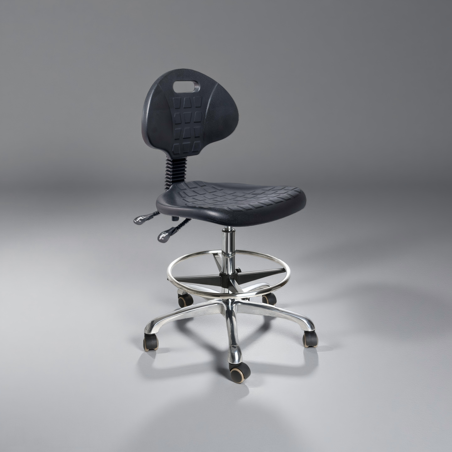 OEM and ODM clients benefit from seamless customization options. Whether it’s adjusting chair height, branding foot rings, or selecting special caster types, one-stop manufacturers can adapt the industrial polyurethane with chrome foot ring and casters adjustable laboratory chair to client-specific needs without outsourcing.